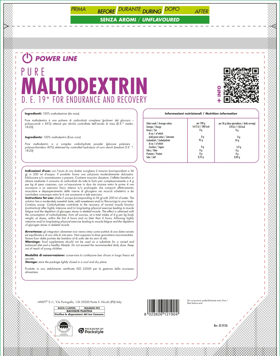 Pure maltodextrin D.E. 19 è una miscela di carboidrati complessi ottenuti dall’amido di mais, progettata per l’atleta che necessita di un supporto energetico efficace e costante. Grazie al valore di destrosio equivalenza (D.E. 19), questo integratore garantisce una disponibilità di glucosio rapida ma equilibrata, rendendolo perfetto per sostenere allenamenti intensi e prolungati.