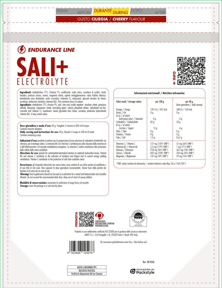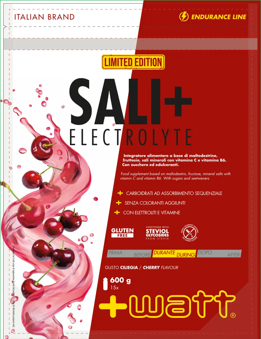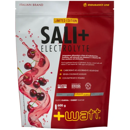 Sali+ electrolyte è un integratore alimentare in polvere progettato per preparare una bevanda ipotonica ideale durante l’attività fisica prolungata. La sua formula combina carboidrati a diversa velocità di assorbimento (maltodestrine, fruttosio e Vitargo®) con una matrice completa di elettroliti e vitamine, garantendo un apporto energetico costante e un ottimale ripristino dei nutrienti persi con la sudorazione.